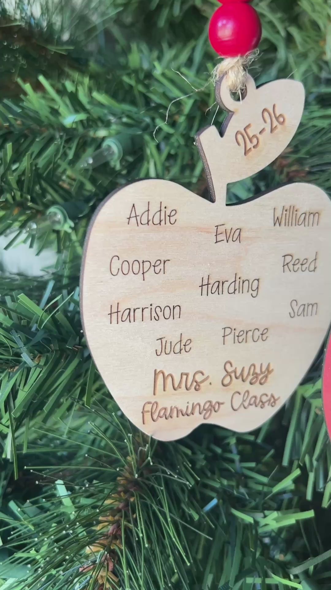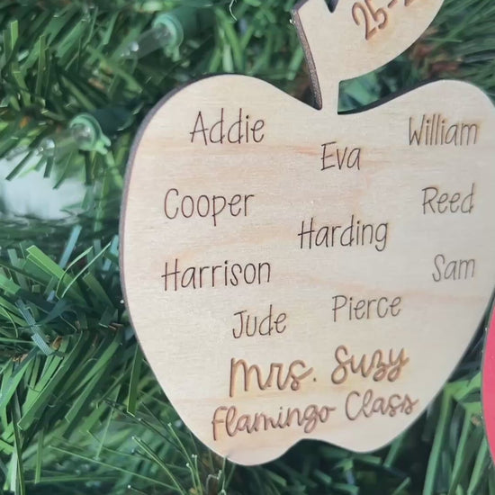 Personalize your ornament by adding the teacher's name, students names, year, and class name. Be sure to choose which color you would like.