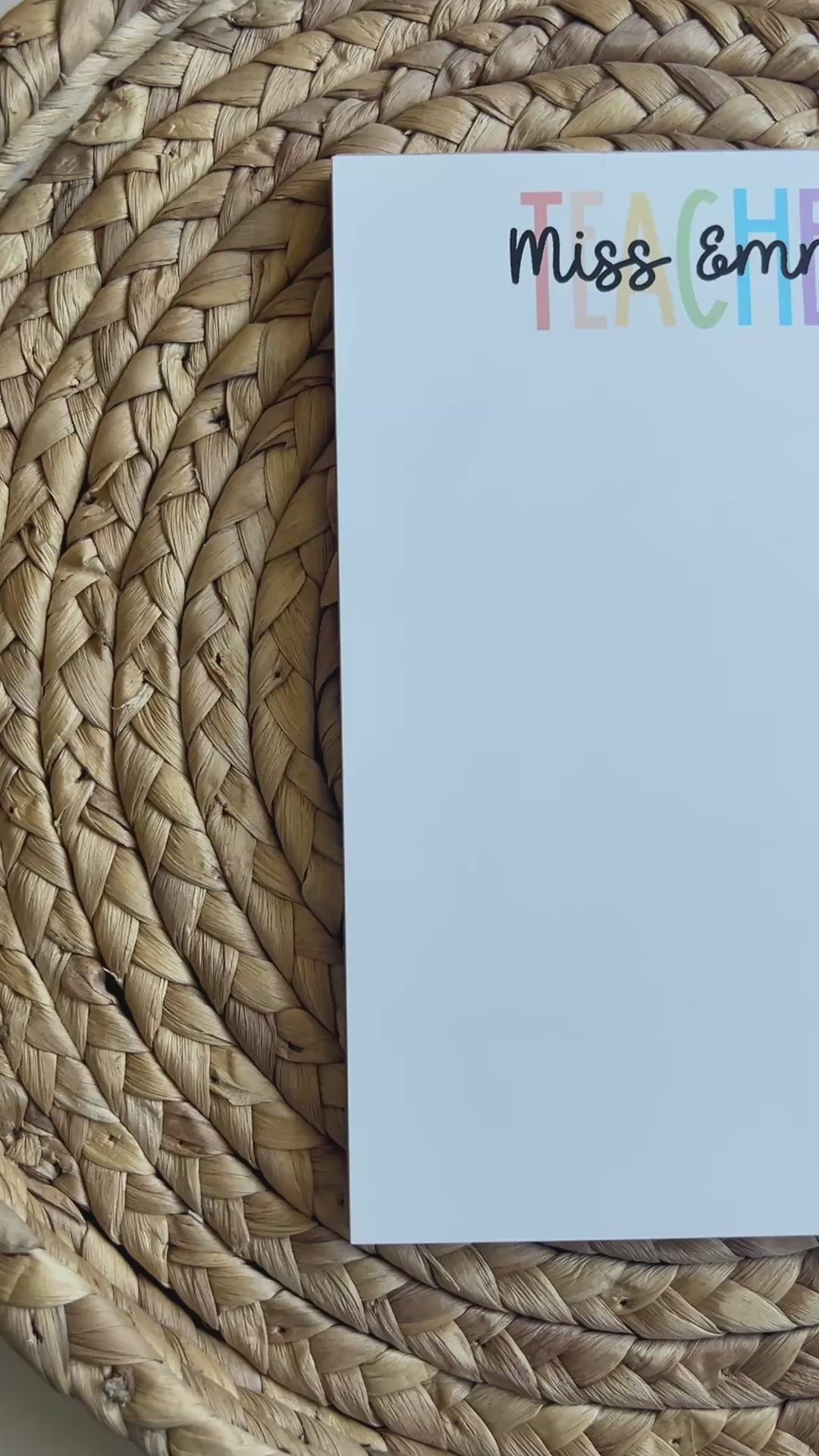 Premium Pastel Notepad with 50 pages and backed with chipboard. You can change the Teacher text to something else - Paraprofessional, Student teacher, Principal, etc.